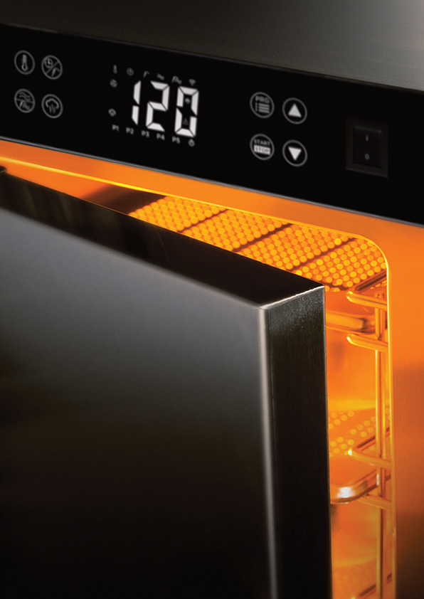 • Digitalanzeige, Hauptschalter, Taste für Start / Stopp, Vorheizfunktion, Temperaturregelung, Warmhaltefunktion, automatischer Warmhaltezyklus, Speicher- und Abruffunktion für Programme, Wertanpassung über Auf-/Ab-Tasten, manuelle Tastensperre, WLAN-Schnittstelle (optional)